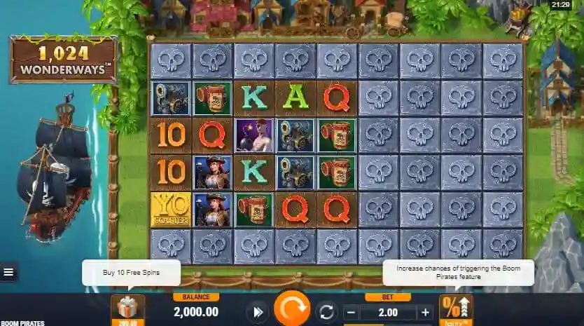 Set sail on a pirate quest for hidden treasures in Boom Pirates, with a group of fearless pirates who will fire cannonballs onto the reels in order for you to find the loot! Play Boom Pirates now!