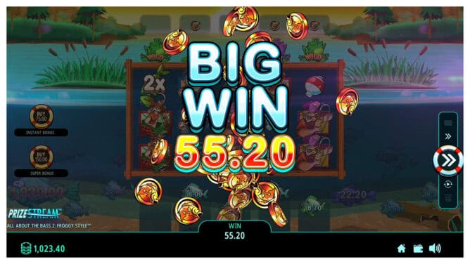 - 🎣 All About the Bass™ Feature – Land a boat above a hook to reel in fish prizes ranging from Small to Mega! Some catches even include multipliers or instant bonus fish for explosive wins.