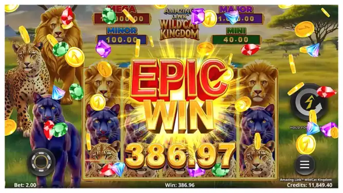 Amazing Link™ WildCat Kingdom captures everything players love about the series — thrilling respins, rewarding jackpots, and dynamic Free Spins modes. Whether you’re chasing the MEGA jackpot, enjoying the feline-themed bonuses, or reveling in the stunning visuals, this game delivers pure adrenaline from start to finish. It’s time to let your inner wildcat rule the reels!