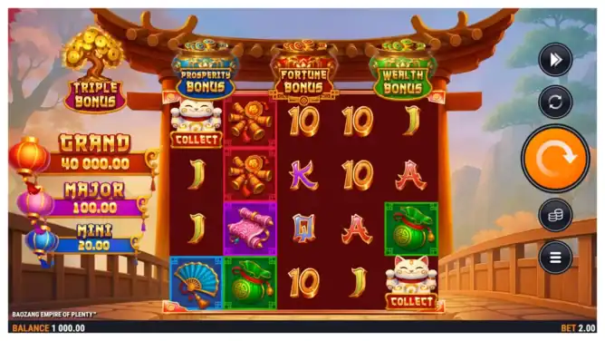 Baozang Empire of Plenty™ invites players into a vibrant world of prosperity, where every spin carries the promise of growing wealth. Although the game uses a traditional 5×4 layout with fixed paylines, it quickly reveals deeper mechanics through its Coin and Collect systems. As green, blue, and red coins begin landing, anticipation steadily builds toward powerful bonus rounds. Consequently, the experience feels progressive rather than static, rewarding players who stay engaged.