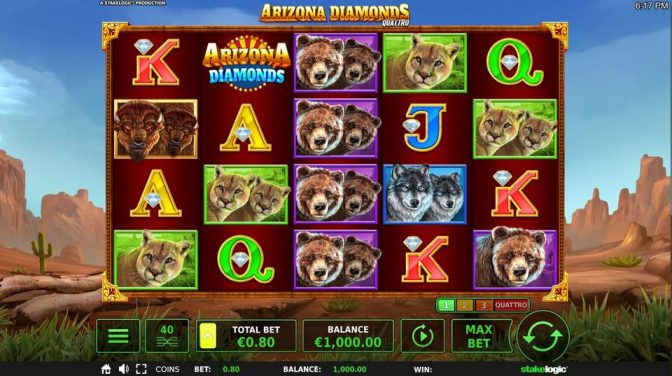 Envahissez le désert de Sonoran à la recherche de diamants dans Arizona Diamonds :Quattro, mais faites attention car ces animaux féroces sont dangereux ! Chassez les bêtes pendant les tours gratuits, car elles sont capables de déclencher la fonction de verrouillage et de re-tournage une fois que le premier rouleau est rempli de la même espèce !