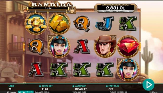 Poursuivez une hors-la-loi moderne en cavale dans Bandida, la machine à sous en ligne à 5 rouleaux, 3 rangées et 20 lignes de paiement fixes. Dans cette machine à sous créative, une Bandida futuriste mais mignonne parcourt les rouleaux pour échapper à la poursuite incessante du dangereux shérif.