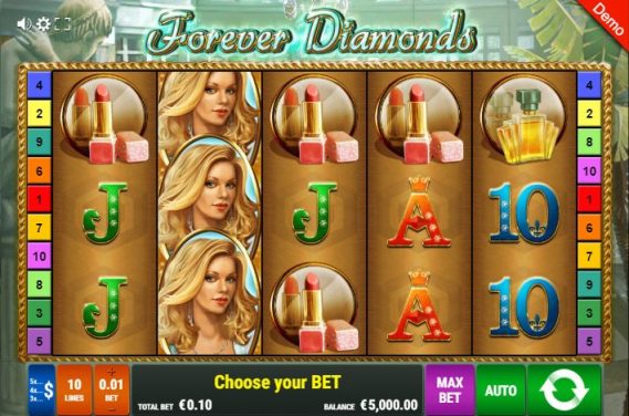 Forever Diamonds est une machine à sous moderne qui utilise divers symboles de luxe tels que des diamants, des parfums et des chiens carlins pas si luxueux que cela. Le monde du bling bling vous attend et un énorme jackpot est à gagner !