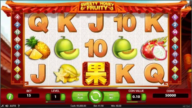 Goûtez aux fruits exotiques juteux dans cette machine à sous à 5 rouleaux et 15 lignes de paiement d’inspiration asiatique, qui vous fera découvrir des fruits tropicaux que vous n’avez peut-être jamais vus auparavant ! Jouez à cette machine à sous classique Sweety Honey Fruity !