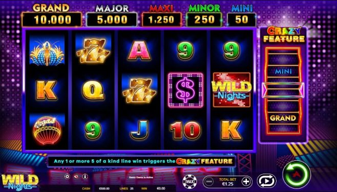 Wild Nights : Crazy Feature emmène le joueur dans une aventure exaltante à Las Vegas. Il s’inspire de la ville magique où le jeu est l’événement principal. Les casinos et les symboles classiques jouent donc un rôle majeur dans ce jeu de machines à sous à 5 rouleaux et 25 lignes de paiement.